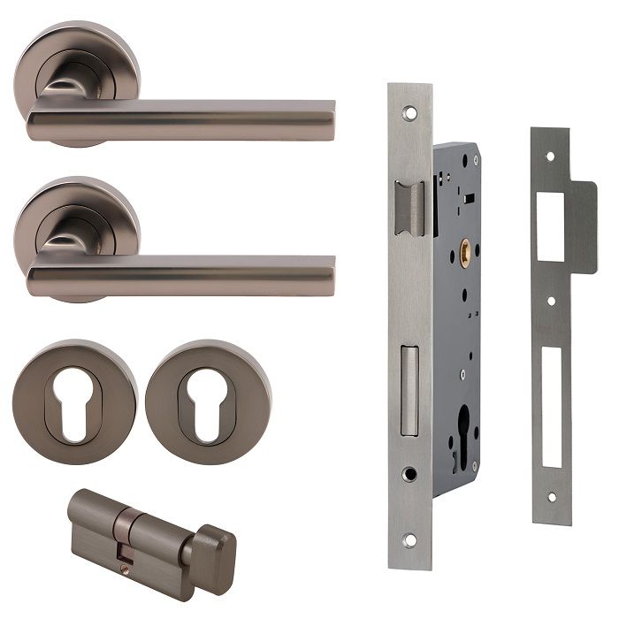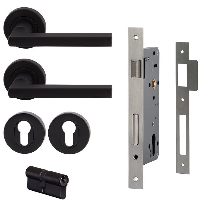 • Entrance Set: Includes lever set, euro escutcheons, 716SS60 euro mortice lock and euro cylinder and turn