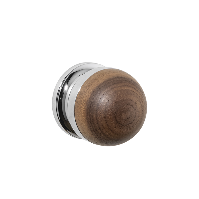 The H02 Knob on Rose is both compact and impactful, featuring a rose fitting, a connecting collar, and a sleek, dome-shaped top. Its carefully proportioned dome fits comfortably in the hand, ensuring a secure grip.