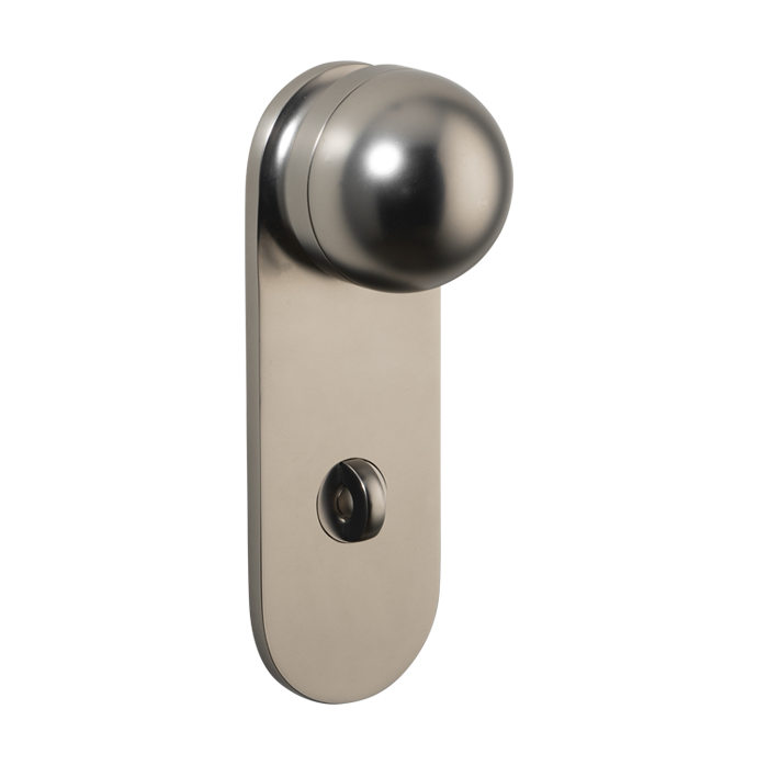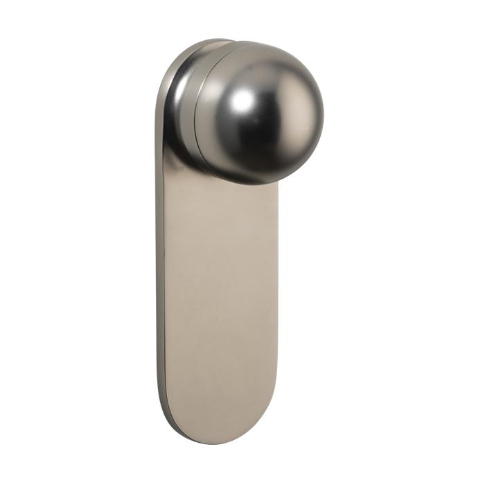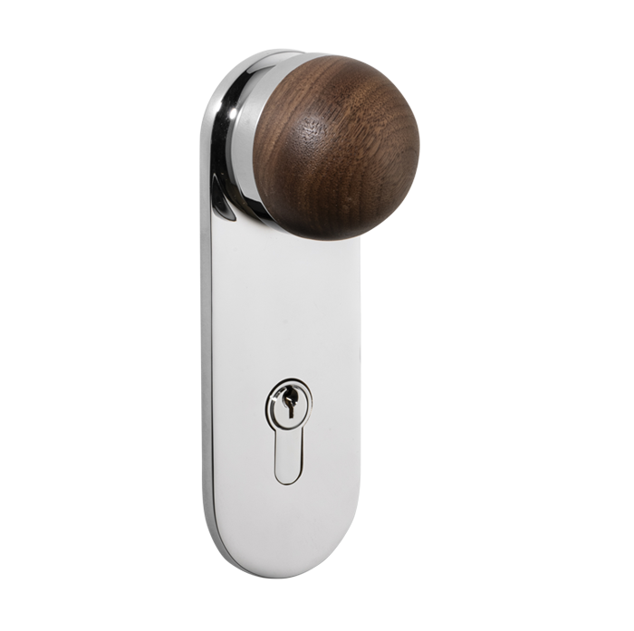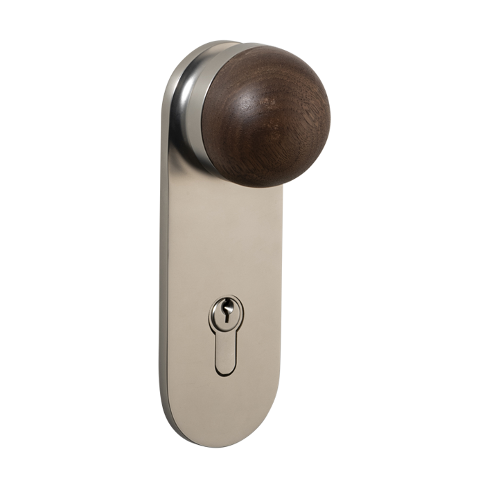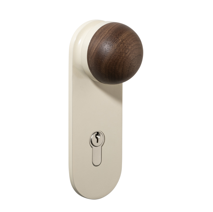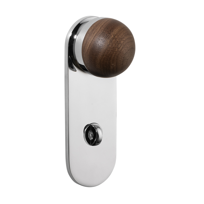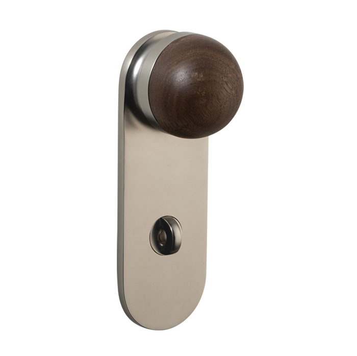 The H02 Knob on Backplate enhances the core knob design by adding a backplate extension. The combination of rounded and flat forms create a sophisticated aesthetic, also available with an optional integrated locking mechanism.
