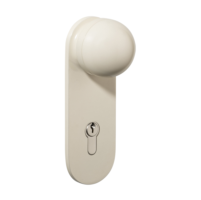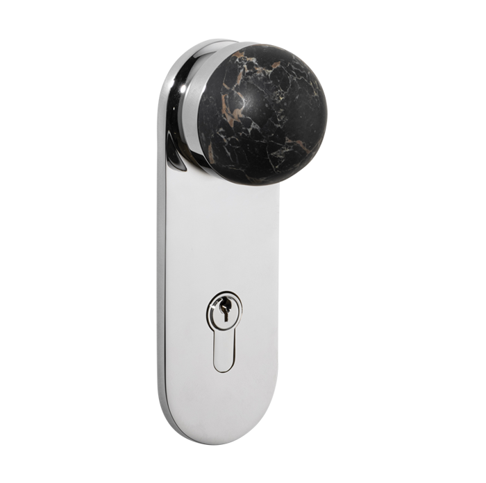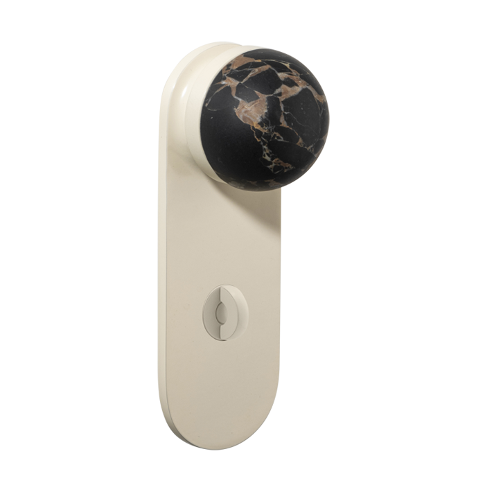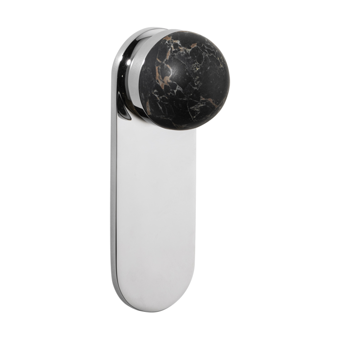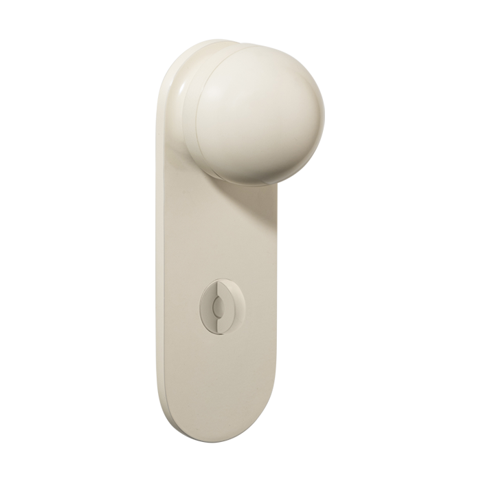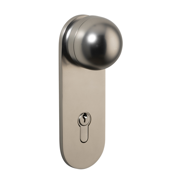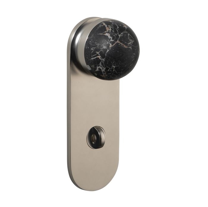 The H02 Knob on Backplate enhances the core knob design by adding a backplate extension. The combination of rounded and flat forms create a sophisticated aesthetic, also available with an optional integrated locking mechanism.