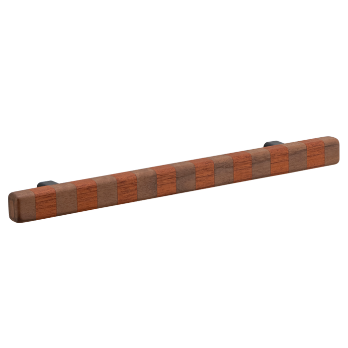 Super versatile, these flashy show ponies are named after their confident banding pattern. The solid handles are superbly hand crafted in Australia from timber species that span the globe and are offered in three striped colourways in contrasting natural tones inspired by ribbons of woodgrain. They range in intensity from deep brown paired with blonde or an earthy red shade, to more vibrant bands marrying rich aubergine and tangerine for bolder statements and will deepen tonally over time thanks to their natural oils working their magic. Offered in three sizes, they can attach to cupboard or drawer surfaces either vertically or horizontally. Smooth to the touch, they are an easy grab upon surfaces that invite constant interaction.